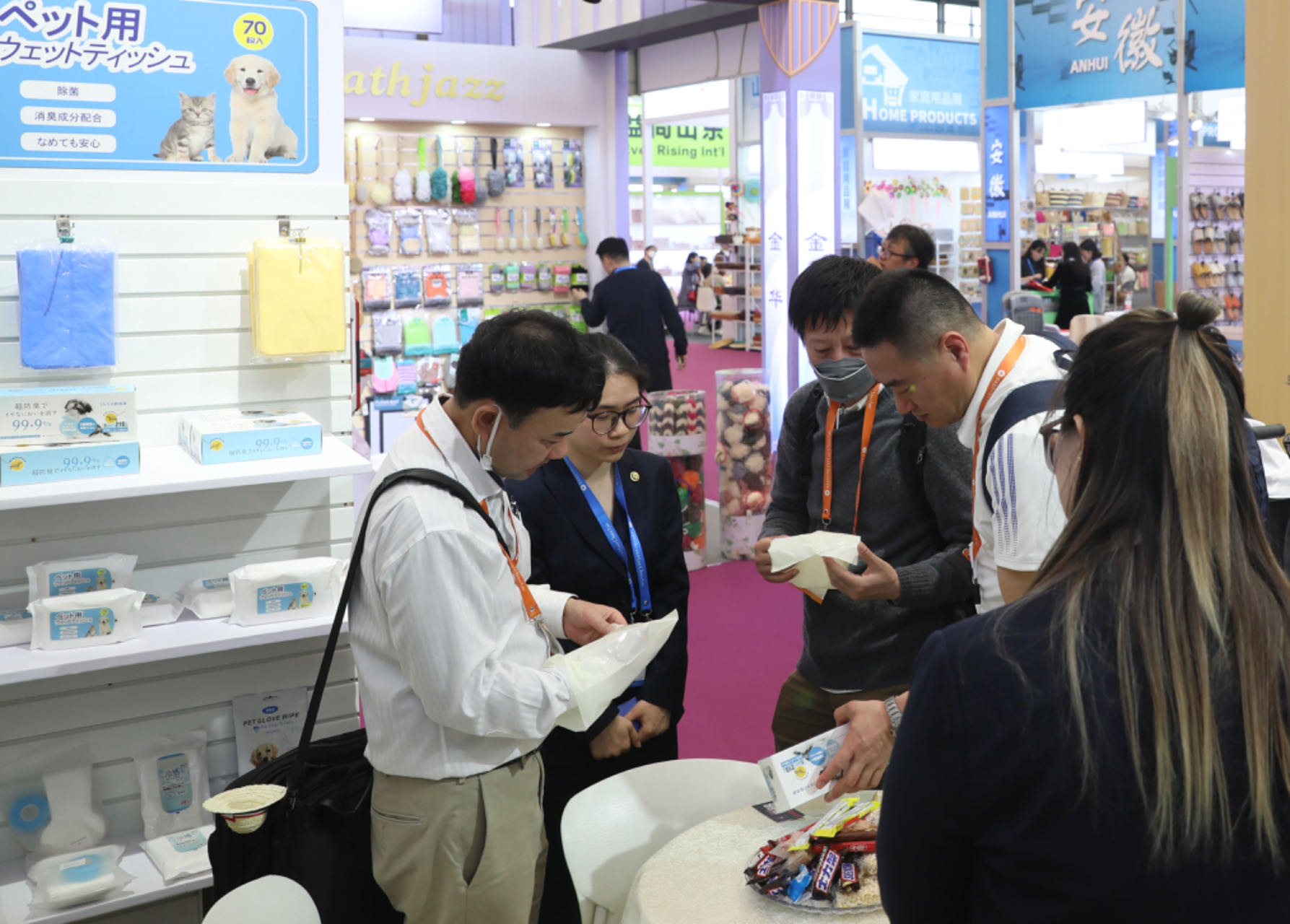 展會期間,公司領(lǐng)導(dǎo)林軍、魏濤濤等走訪各展位調(diào)研指導(dǎo),實地考察展位陳放效果、客戶接洽情況,鼓勵各參展人員把握機遇搶訂單。據(jù)統(tǒng)計,本屆華交會期間公司展區(qū)累計接待海內(nèi)外采購商逾60位,其中搭載創(chuàng)新設(shè)計的功能型寵物用品受到采購商青睞,現(xiàn)場即達成10萬美元意向訂單。