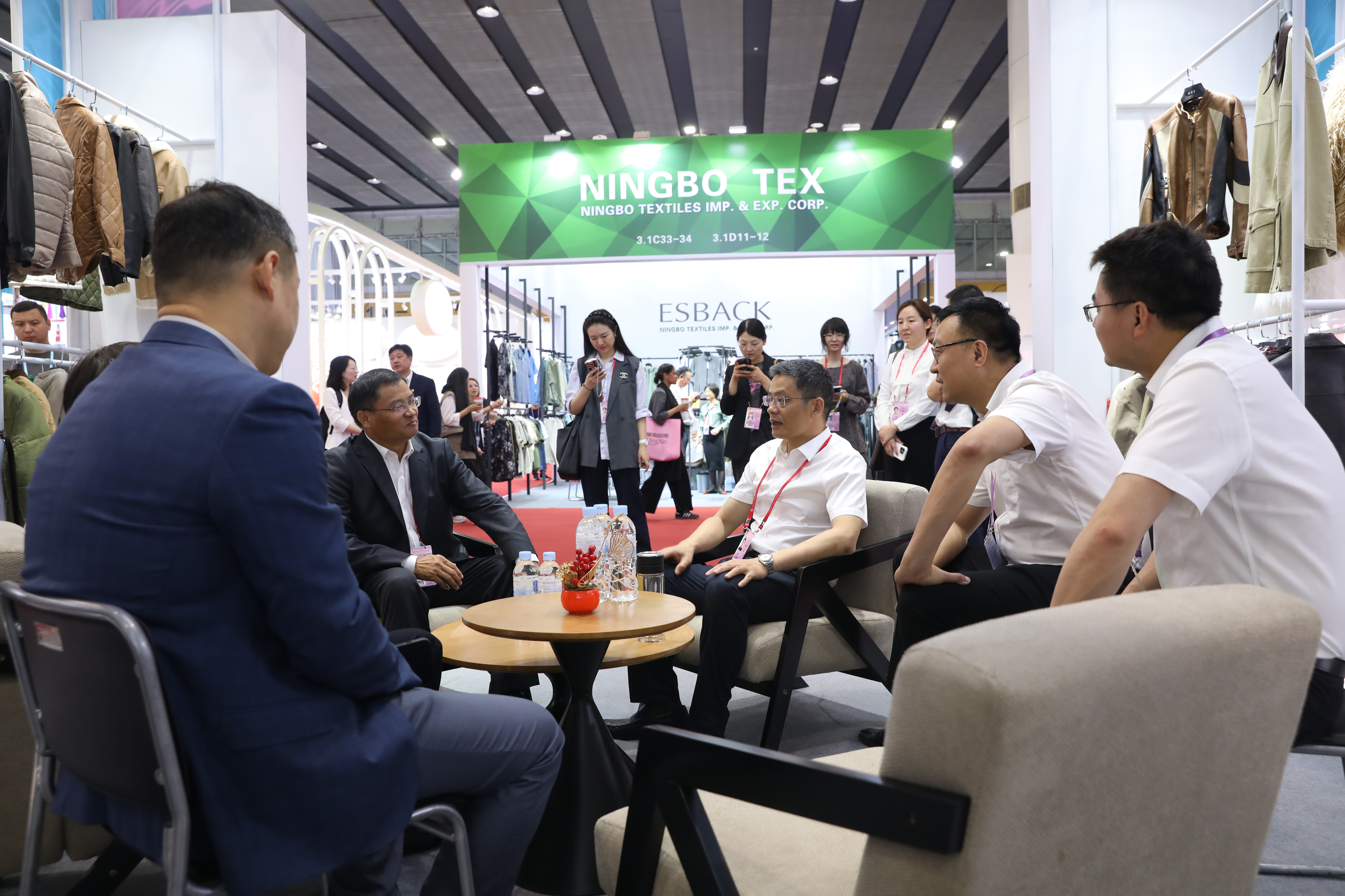 展會期間,省國貿集團董事長、黨委書記高秉學,副總經理、黨委委員張勇深入浙江土畜展位,詳細了解參展情況、市場變化和企業應對舉措。中國紡織品進出口商會會長曹甲昌、中國食品土畜進出口商會會長曹德榮先后走訪浙江土畜展位,就產品開發、訂單出運、當前外貿形勢等展開深入交流。