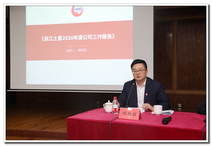 楊總隨后代表經(jīng)營班子,以《堅定信心 真抓實干 奮勇爭先 全力書寫“十四五”開局新篇章》為主題作公司2020年度工作報告。楊總指出,2020年,浙江土畜堅決貫徹落實省國資委、省國貿(mào)集團(tuán)決策部署,以“三地一窗口”的使命擔(dān)當(dāng),扎實做好“六穩(wěn)六保”工作,統(tǒng)籌推進(jìn)疫情防控和經(jīng)營發(fā)展,奮力實現(xiàn)了“兩戰(zhàn)贏”目標(biāo)。報告回顧了“十三五”期間公司“一體兩翼”戰(zhàn)略向縱深發(fā)展所取得的一系列成就,資產(chǎn)總額、凈資產(chǎn)、營業(yè)收入、利潤總額分別是“十二五”末的1.2倍、1.4倍、1.5倍和1.8倍,進(jìn)出口額連續(xù)突破7億美元、8億美元大關(guān),初步形成了“內(nèi)外貿(mào)并舉、進(jìn)出口平衡”的發(fā)展態(tài)勢。
