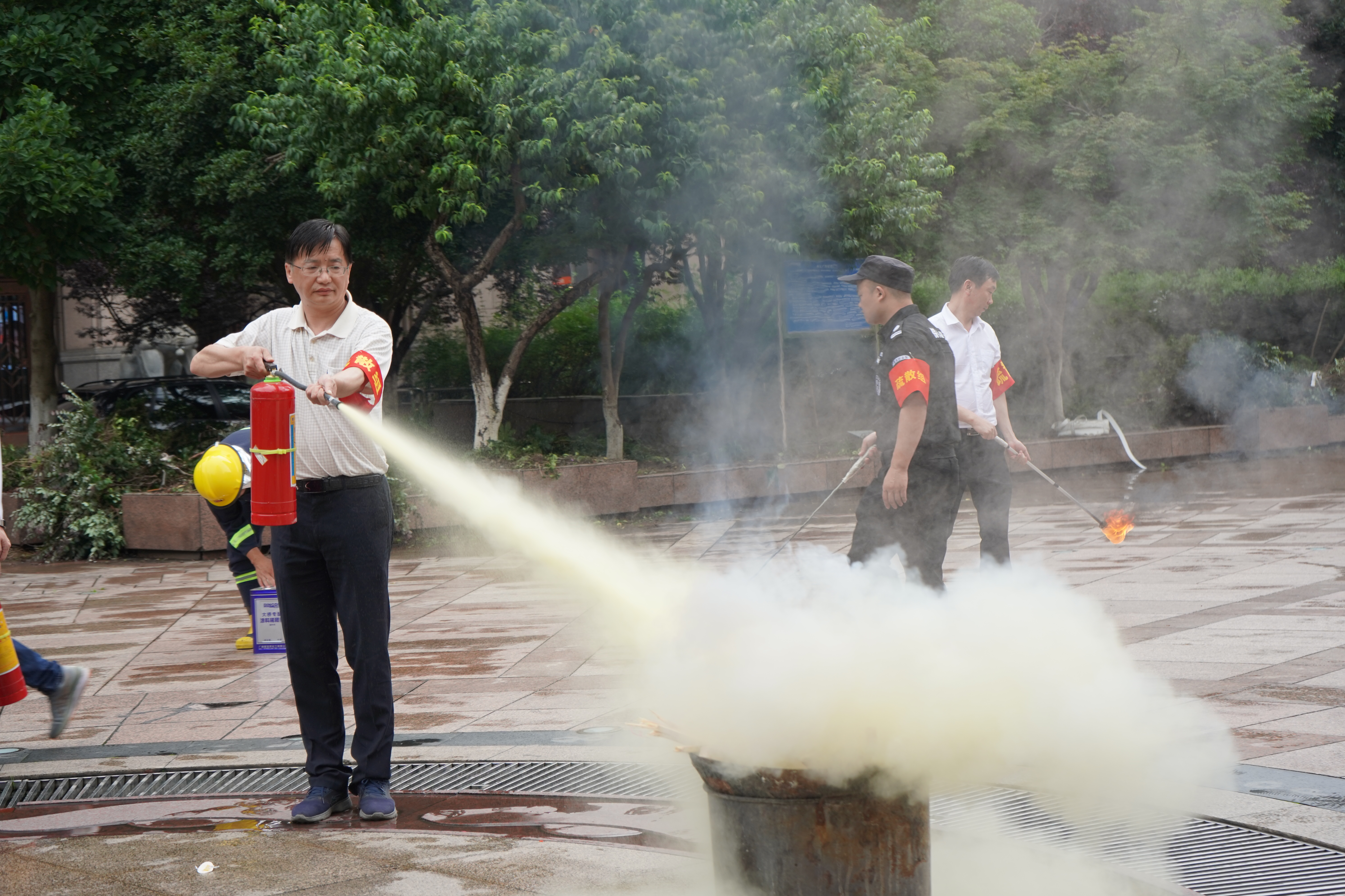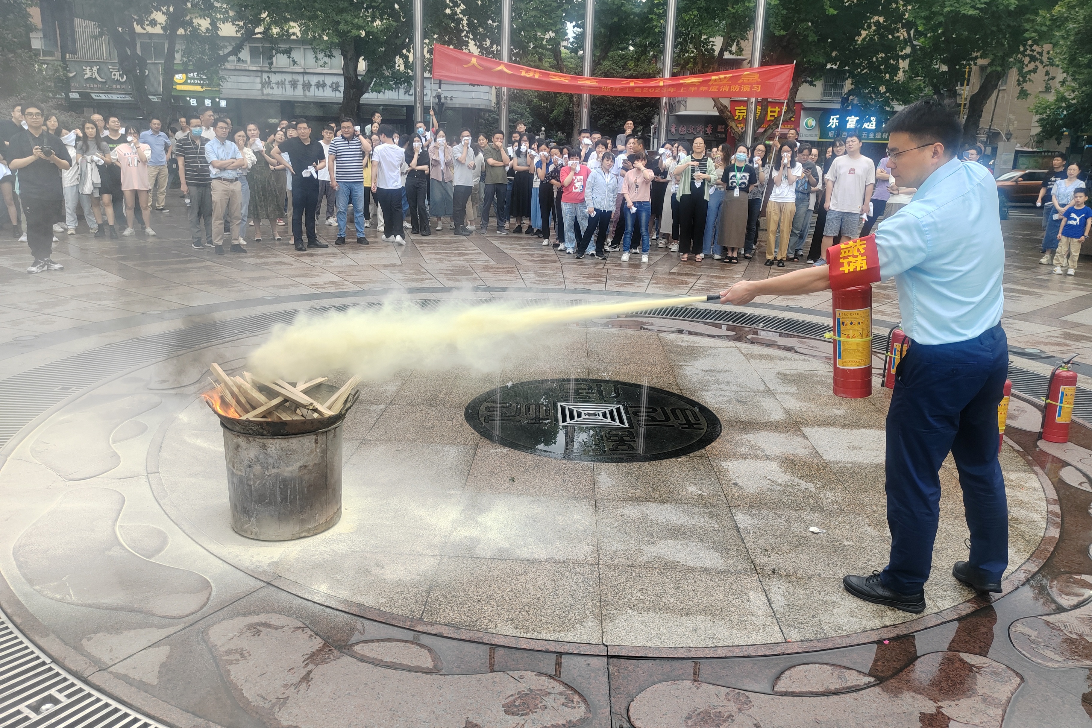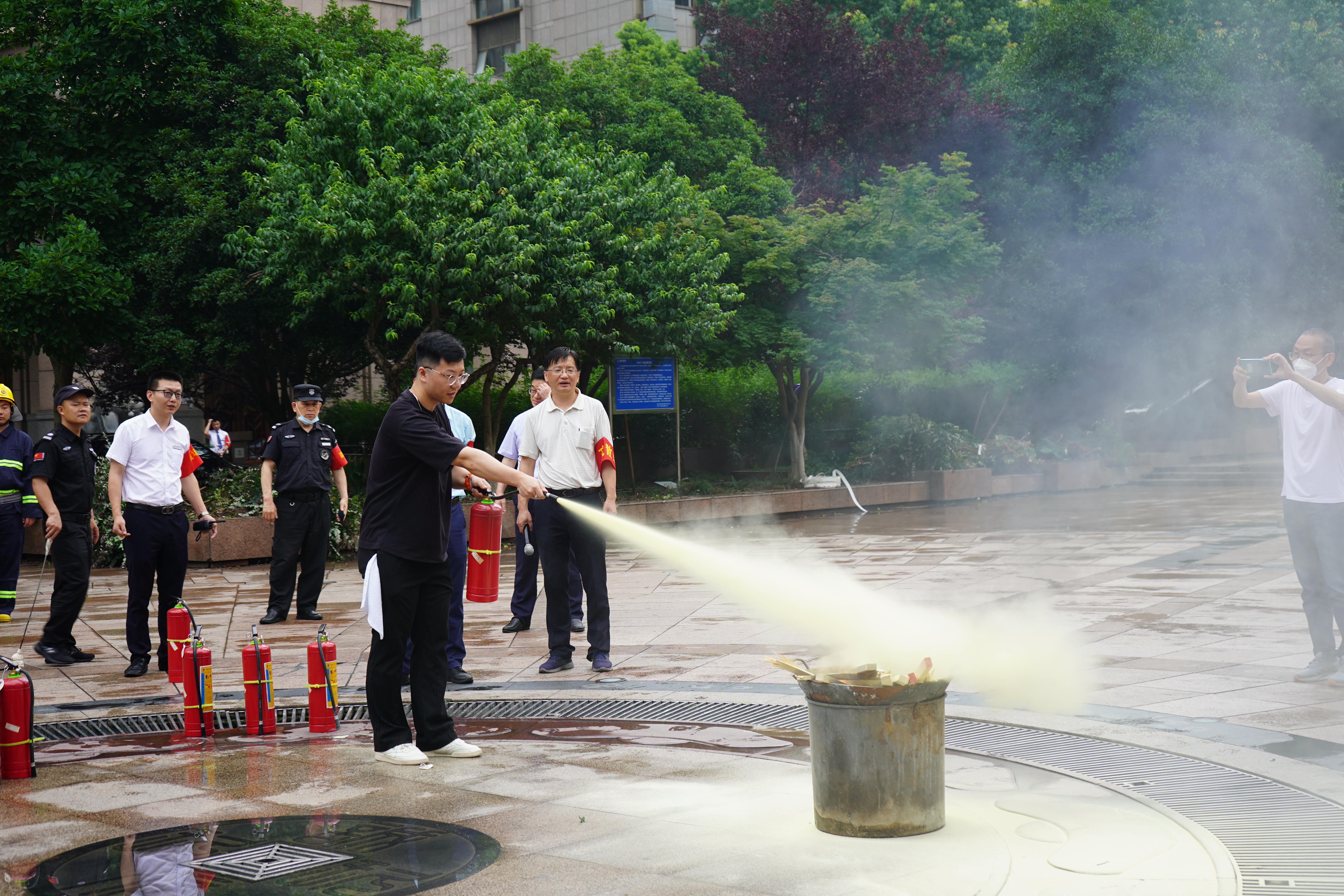 疏散逃生后,大樓專職安全管理員介紹消防器材的使用方法和注意事項,員工踴躍參與,輪流使用滅火器進(jìn)行滅火演習(xí),切實提升員工撲救初期火災(zāi)能力。